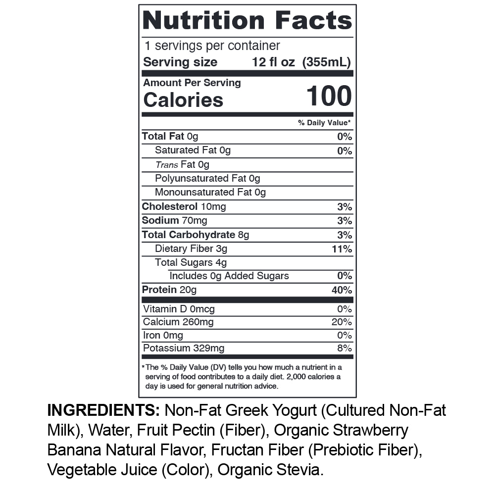 We’re bananas about this classic combo! Our Strawberry Banana Drinkable Greek Yogurt blends organic banana flavor and strawberry flavors with a hint of organic stevia for smoothie-worthy sweetness --without any added sugar. We are proud to make our yogurt with milk from pasture-based family-owned dairy farms in the Northeast.